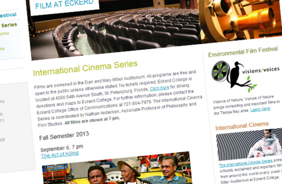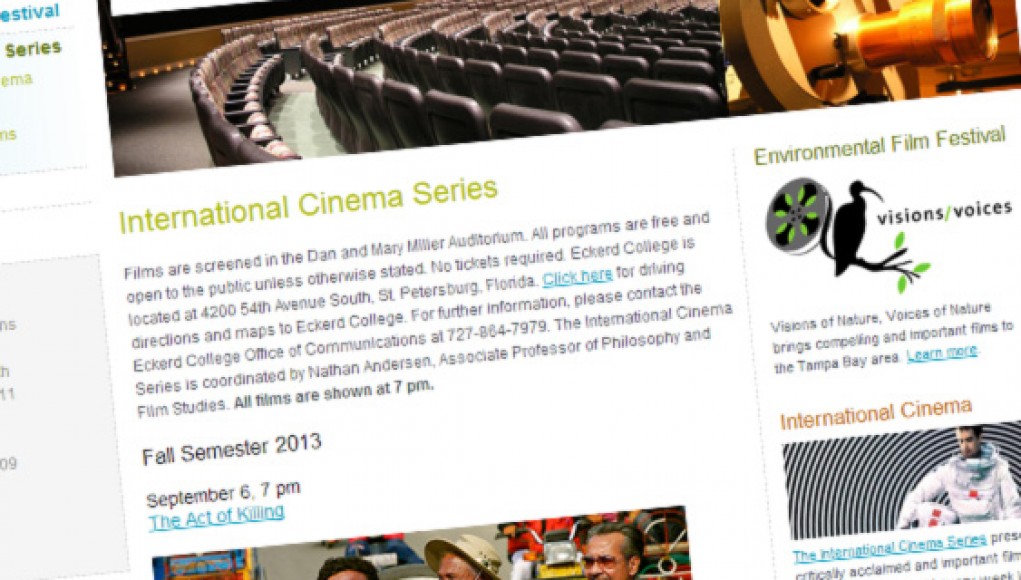 For the next three months, cinephiles should leave Friday nights open for Eckerd College’s International Cinema Series, where the slate of free movies on the main campus seem to get better every year. The Act of Killing, Joshua Oppenheimer’s new documentary as difficult to forget as it is to describe, started off the trimester this past weekend, and the Fall Semester’s schedule reads like a film festival from Cannes or New York. Drug Wars from Chinese director Johnnie To is next up on Sep. 13, and Aleksandr Sokurov’s Faust, 2012, a Golden Bear winner from Venice’s Film Festival and Carlos Reygadas’s Post Tenebras Lux, 2012, are but a few of the lineup’s highlights.