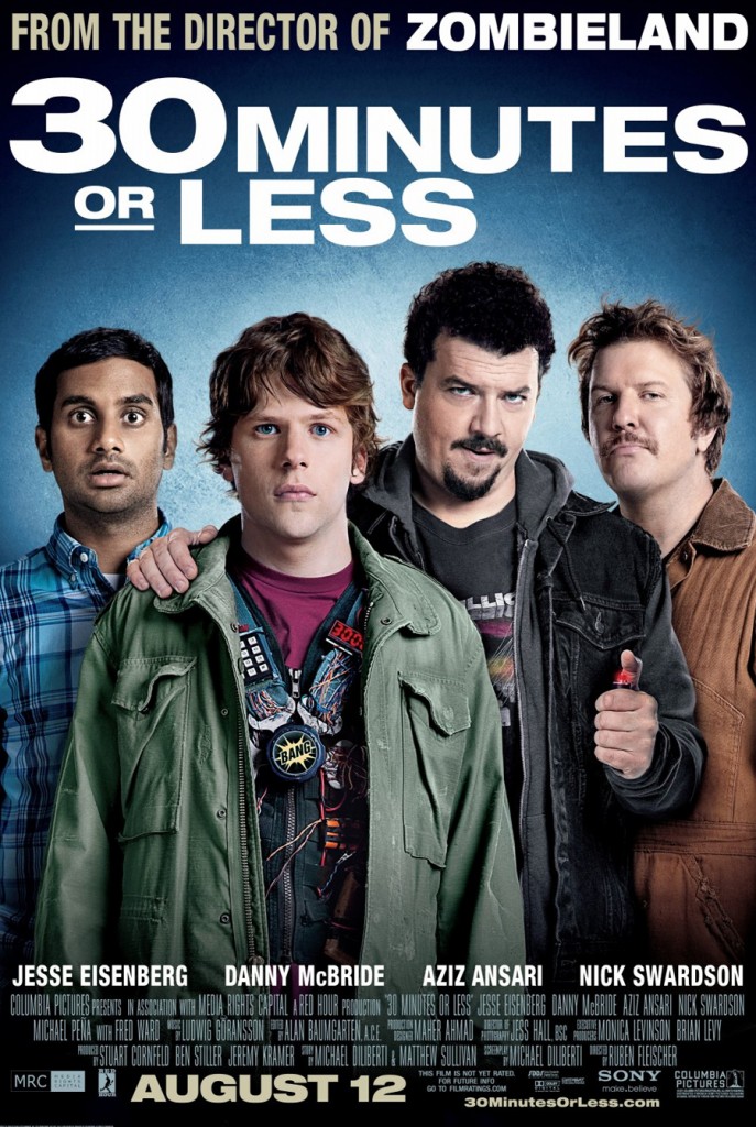 Nick (Jesse Eisenberg) is a pizza delivery guy who never seems to deliver his orders on time. Katie (Dilshad Vadsaria), Nick’s friend in which he has some romantic interest in, has explained to Nick that she is leaving for Atlanta. Nick pleads with his best friend and Katie’s twin, Chet (Aziz Ansari) to convince her to stay; a conversation that ends up taking a nose dive. Meanwhile, Dwayne (Danny McBride) and his sidekick Travis (Nick Swardson) realize that by assassinating Dwanye’s father, they can acquire his millions. The two decide to plant a bomb on an unsuspecting victim and force them to steal $100,000 in order to purchase the services of an assassin. Dwayne and Travis happen to choose Nick.